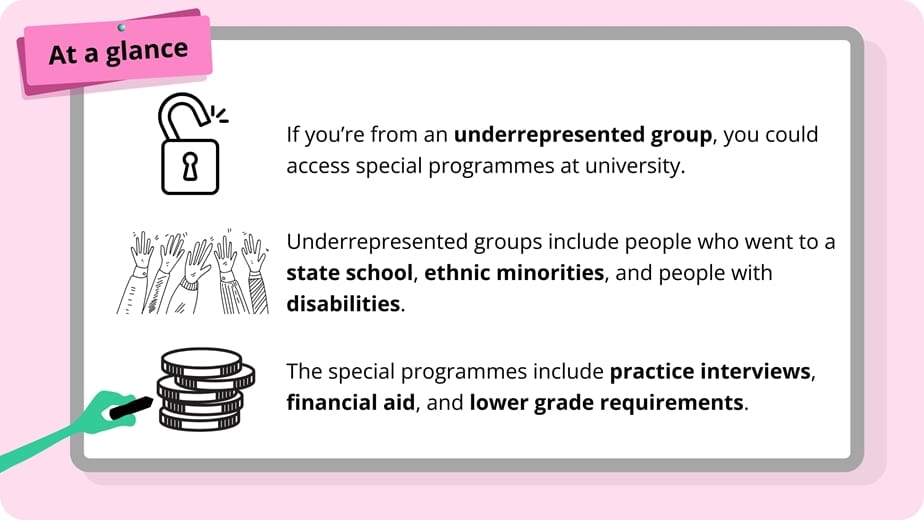 Some universities also offer programmes to help underrepresented students. Here are some examples: